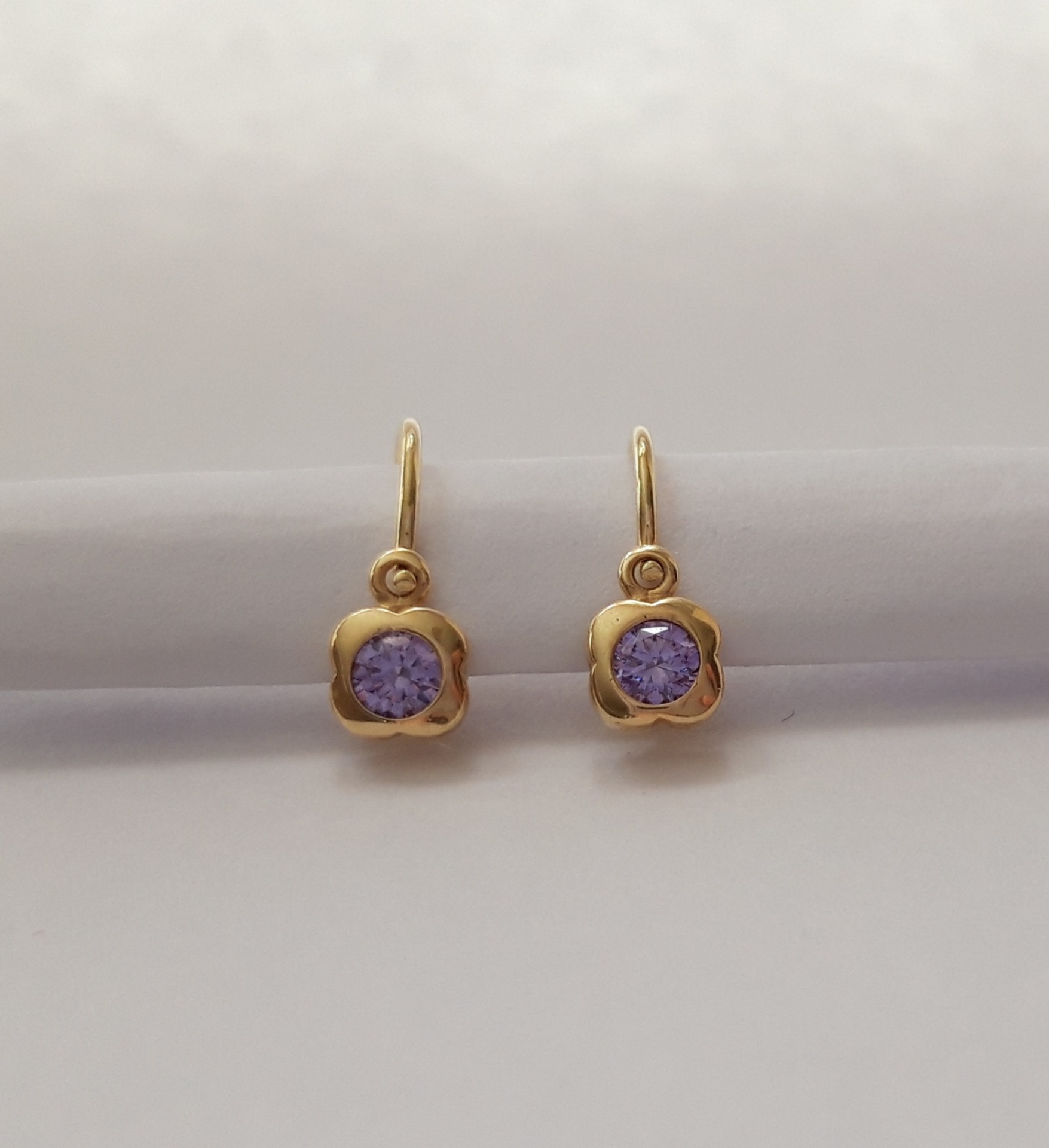 Dětské náušnice ze žlutého zlata 585/1000 s fialovými kamínky