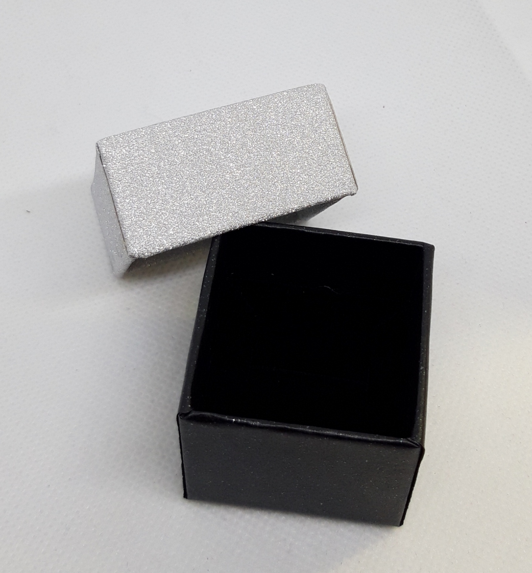 Papírová krabička vhodná na prsten, náušnice, přívěsek, soupravu - řetízku s přívěskem a řetízek.