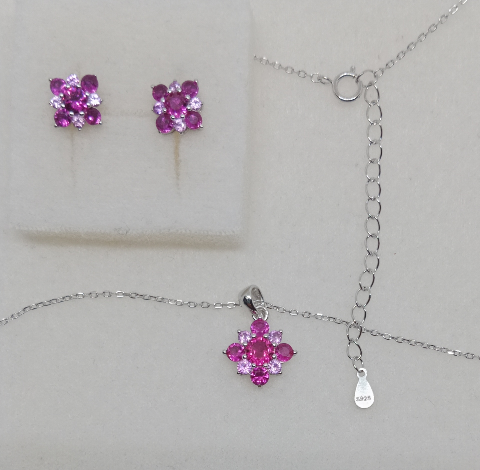 Přívěsek s řetízkem a náušnice ze stříbra ryzosti 925/1000 s kamínky