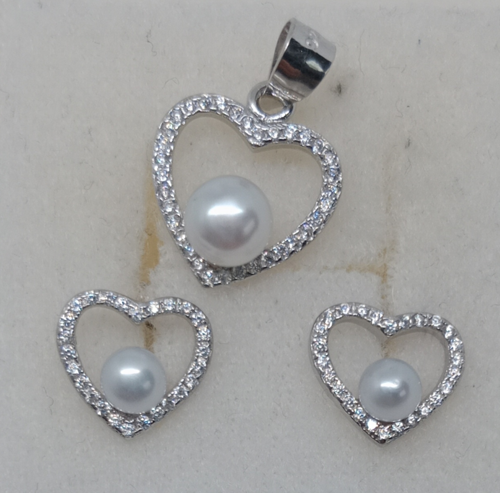 Náušnice s přívěskem ze stříbra ryzosti 925/1000 s kamínky a perličkou