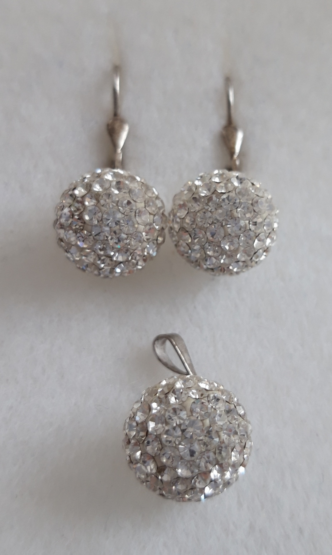 Souprava náušnic a přívěsku ze stříbra ryzosti 925/1000 s kamínky.