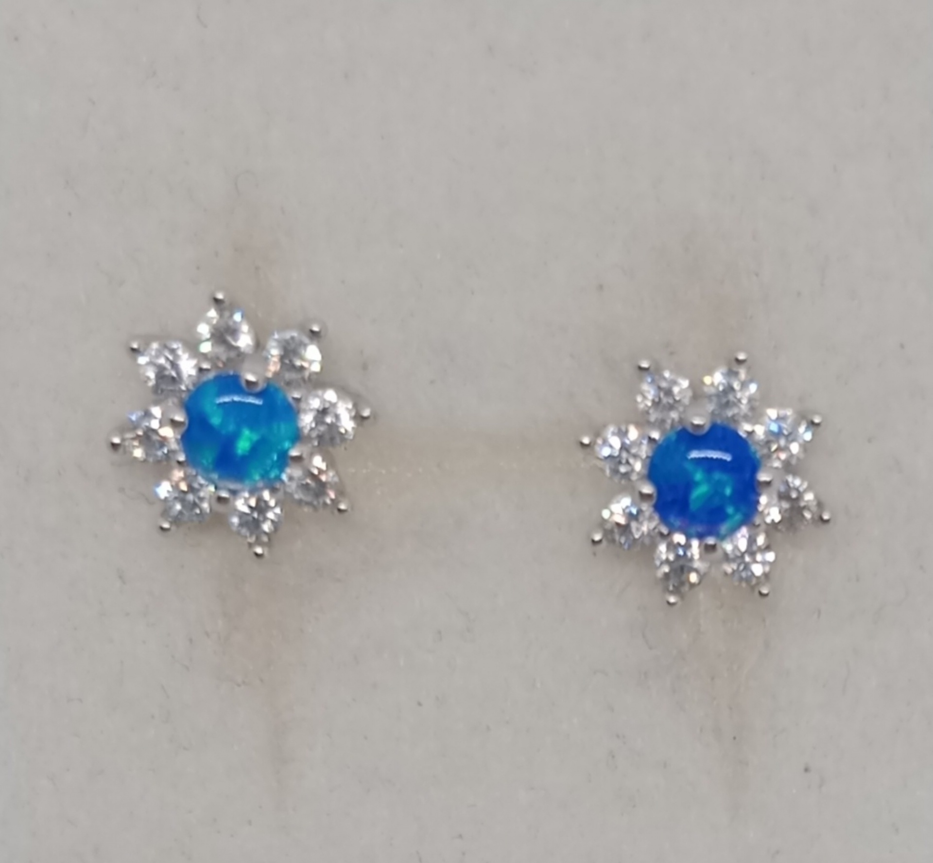 Náušnice ze stříbra 925/1000 se zirkony a středovým modrým opálem