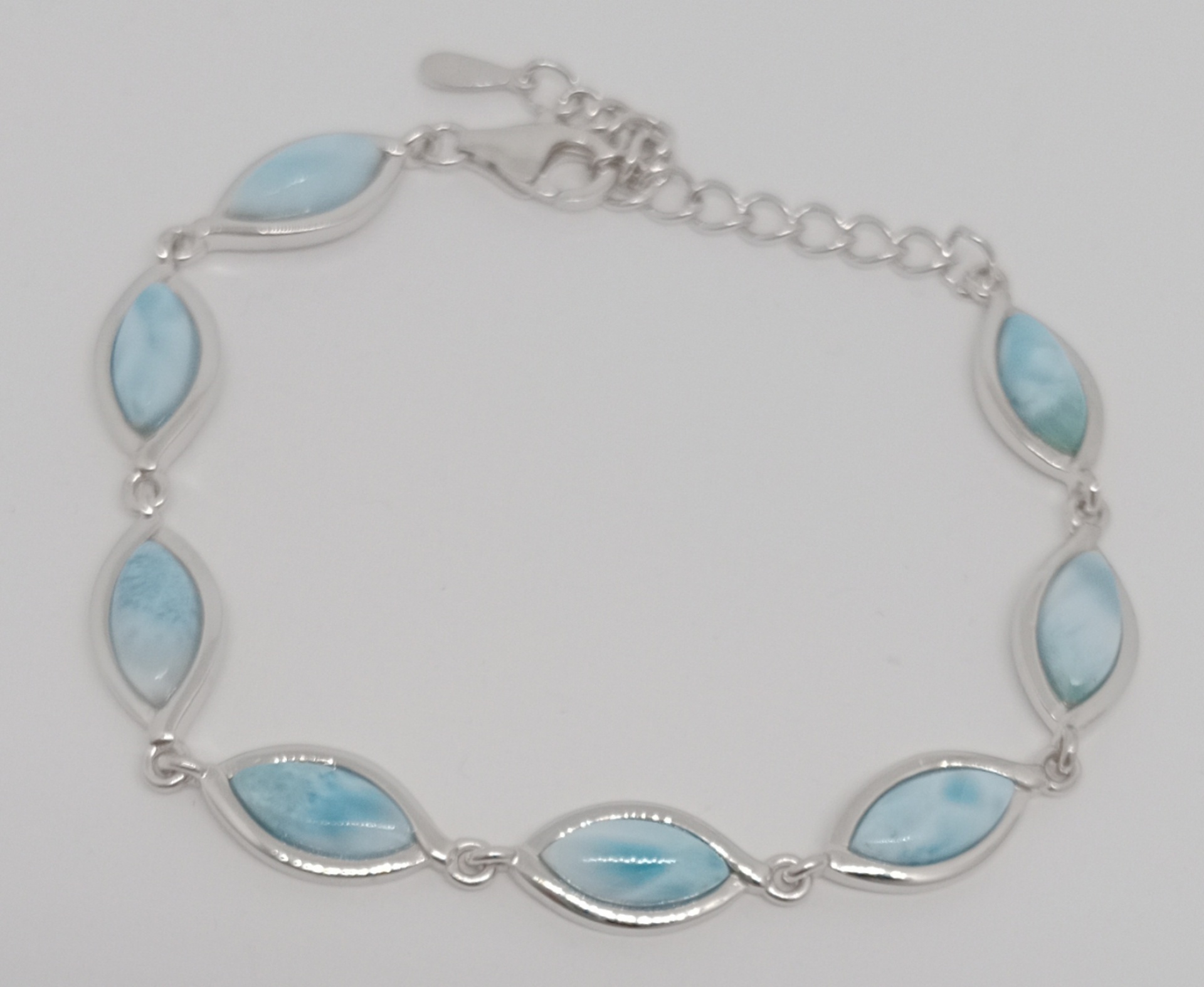 Náramek ze stříbra ryzosti 925/1000 šíře cca 8mm s larimarem