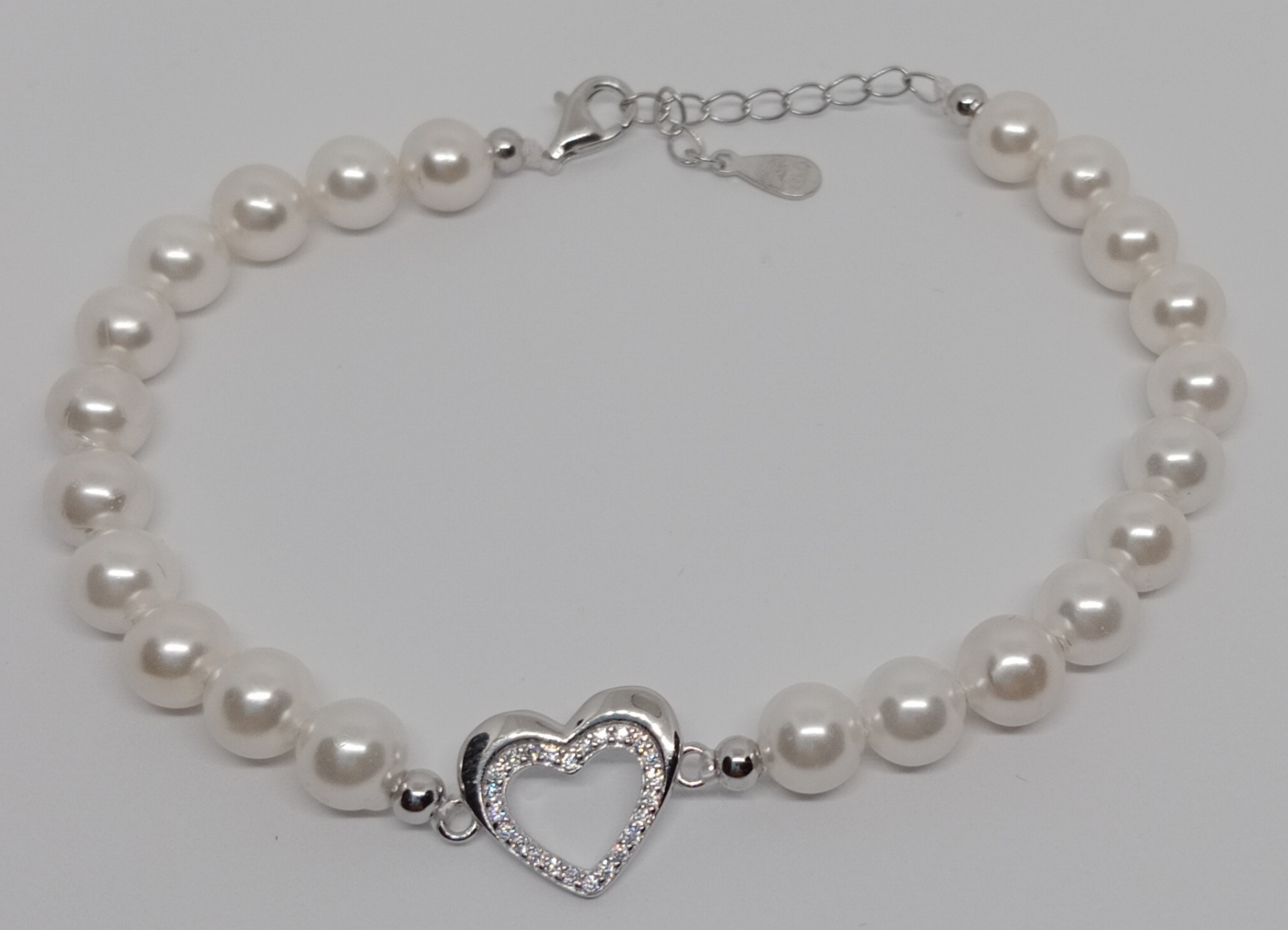Náramek ze stříbra ryzosti 925/1000 z perliček, šíře 6,2mm s kamínky