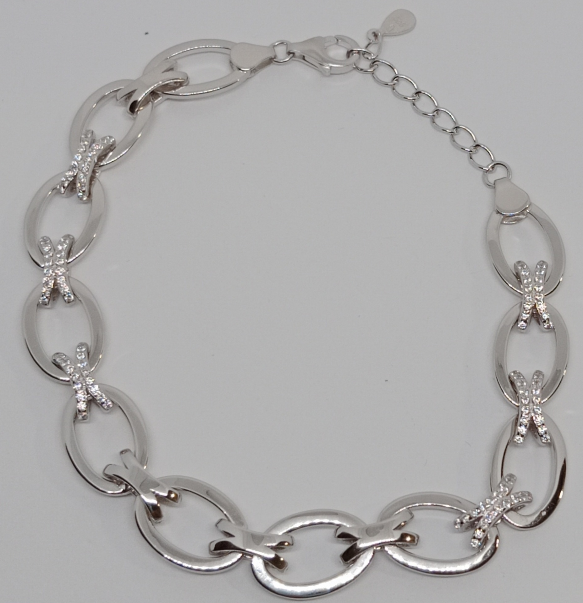 Náramek ze stříbra ryzosti 925/1000 šíře cca 10mm s kamínky