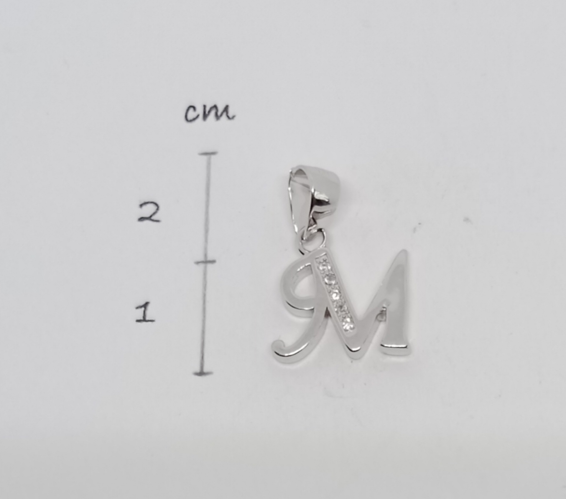 Stříbrný přívěsek ryzosti 925/1000 písmeno "M" s kamínky