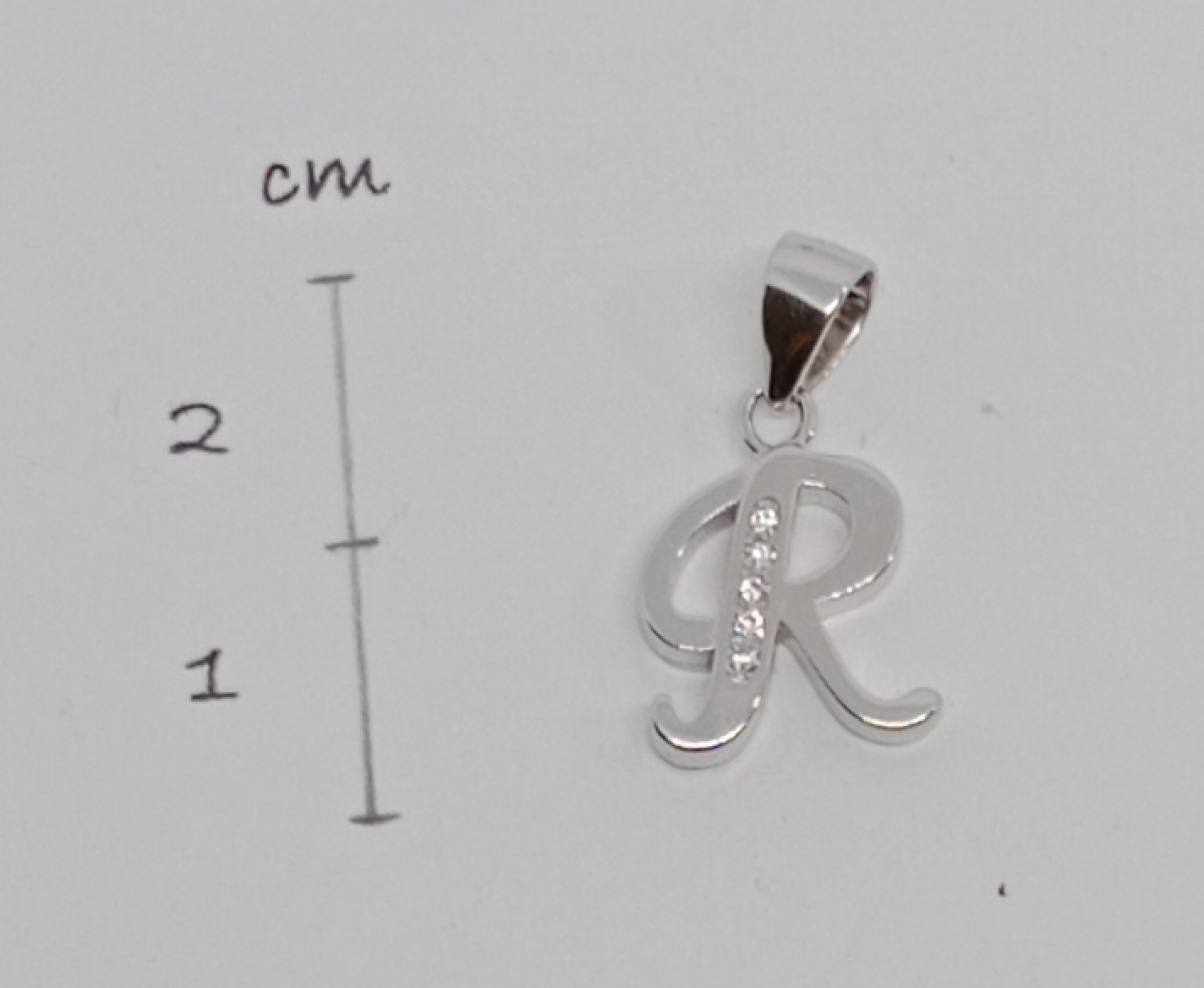 Stříbrný přívěsek ryzosti 925/1000 s kamínky "R"