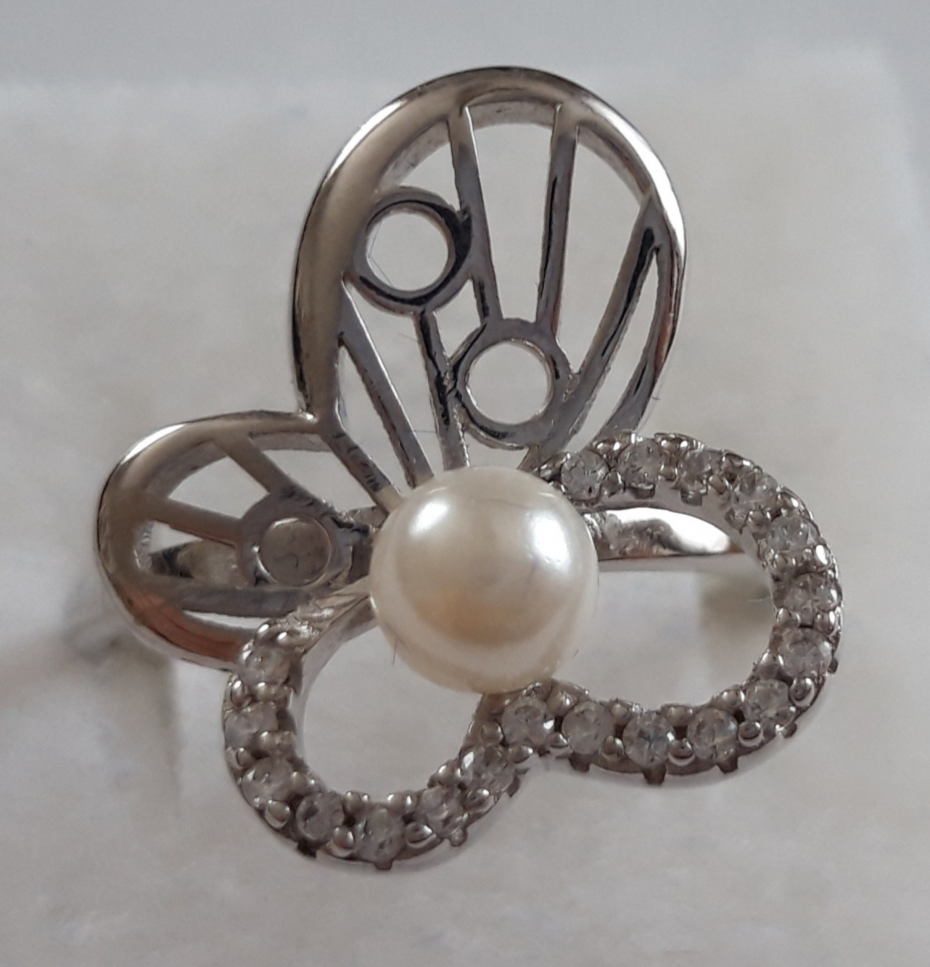 Prsten ze stříbra ryzosti 925/1000 s kamínky a perličkou