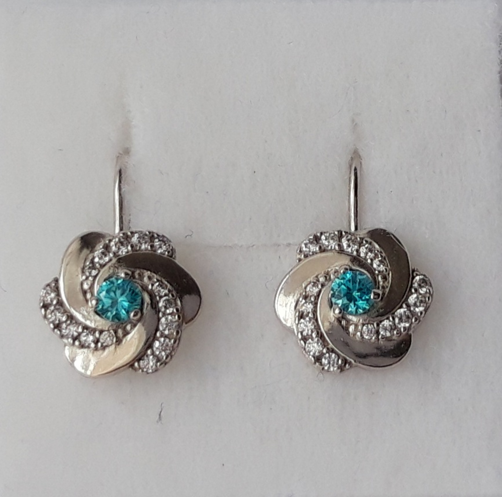 Náušnice z bílého zlata 585/1000 s bílými a tyrkysovými kamínky