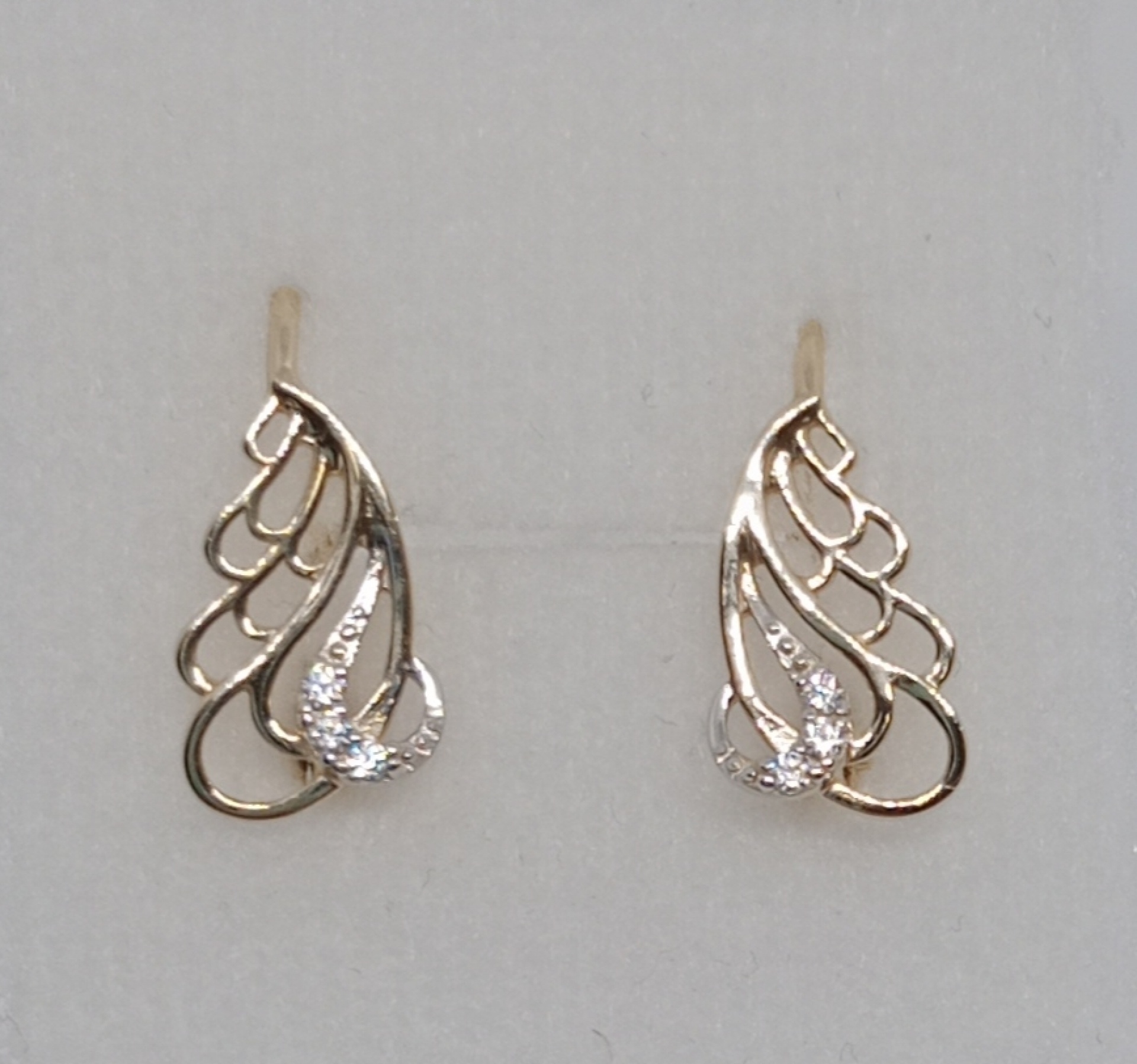 Náušnice ze žlutého zlata v kombinaci s bílým zlatem ryzosti 585/1000 s kamínky