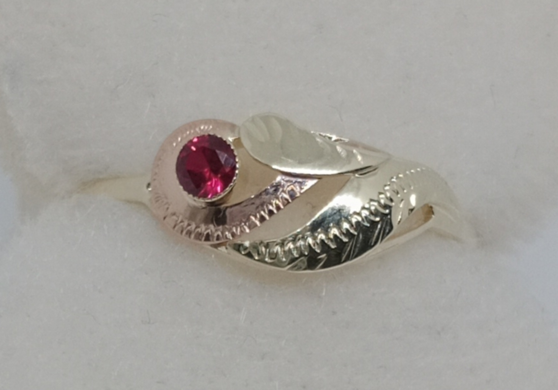 Prsten ze žlutého zlata v kombinaci s červeným zlatem 585/1000 s kamínkem