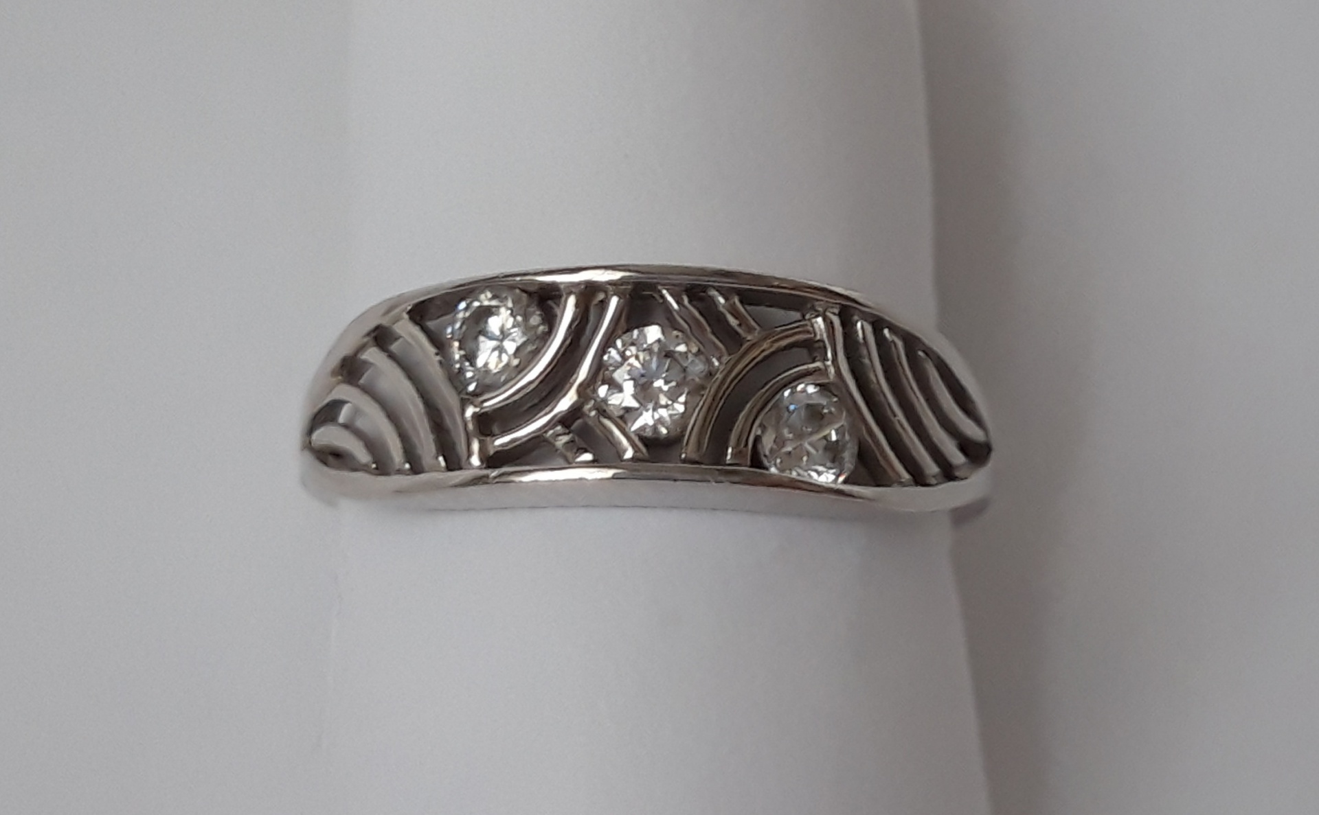 Prsten z bílého zlata 585/1000 se 3 zirkony.