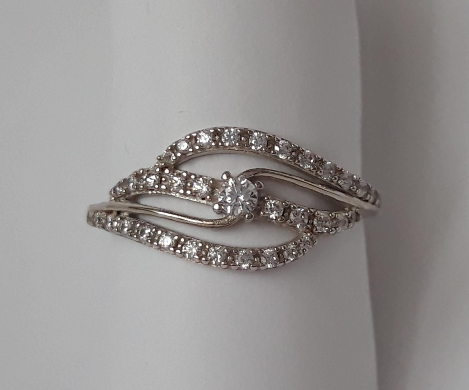 Prsten z bílého zlata 585/1000 se zirkony.