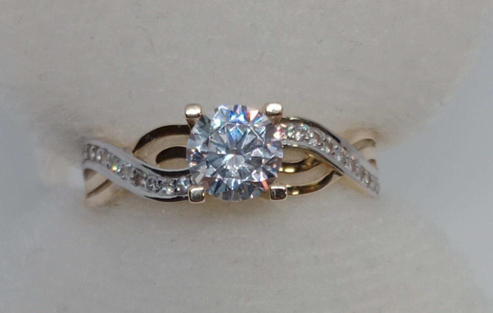Prsten ze žlutého zlata v kombinaci s bílým zlatem ryzosti 585/1000 s kamínky